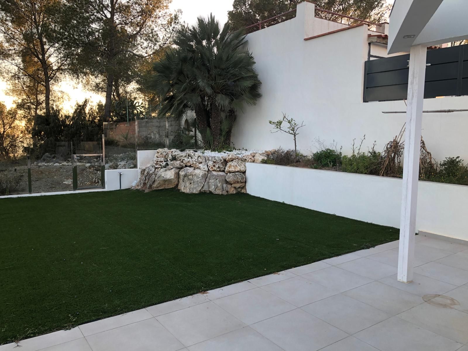 Reemplazamos por completo el césped artificial existente por nuestra versión de calidad superior y acabado premium, elevando la estética y el confort del jardín. También se resolvieron problemas en terrazas secas, dándoles nueva vida con vegetación adaptada y soluciones duraderas.